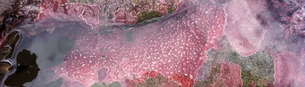 Over the last few weeks I have been a regular visitor to the great stretches of basalt rock that reach out into Milsey Bay in the east of the town, and to the beach by the 3rd hole in the west, to watch the ebb of Winter flow into Spring. There are a few favourite tide pools that draw me in especially on the days of lowest tides with their beauty and intensity of light and life. This is not a collecting time of year, so I take photos, Some I have made into banners for this site, but thought I might post them here in their original forms.